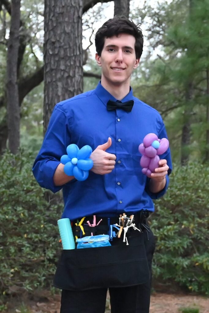 I started twisting balloons in middle school, stealing balloons from my mother’s party supplies from the party business she ran. I quickly became obsessed with creating all kinds of balloon animals. I love the mental puzzles involved in turning a single balloon into a three-dimensional object. More than anything, though, I enjoy the connection that comes from making personalized crafts for people.